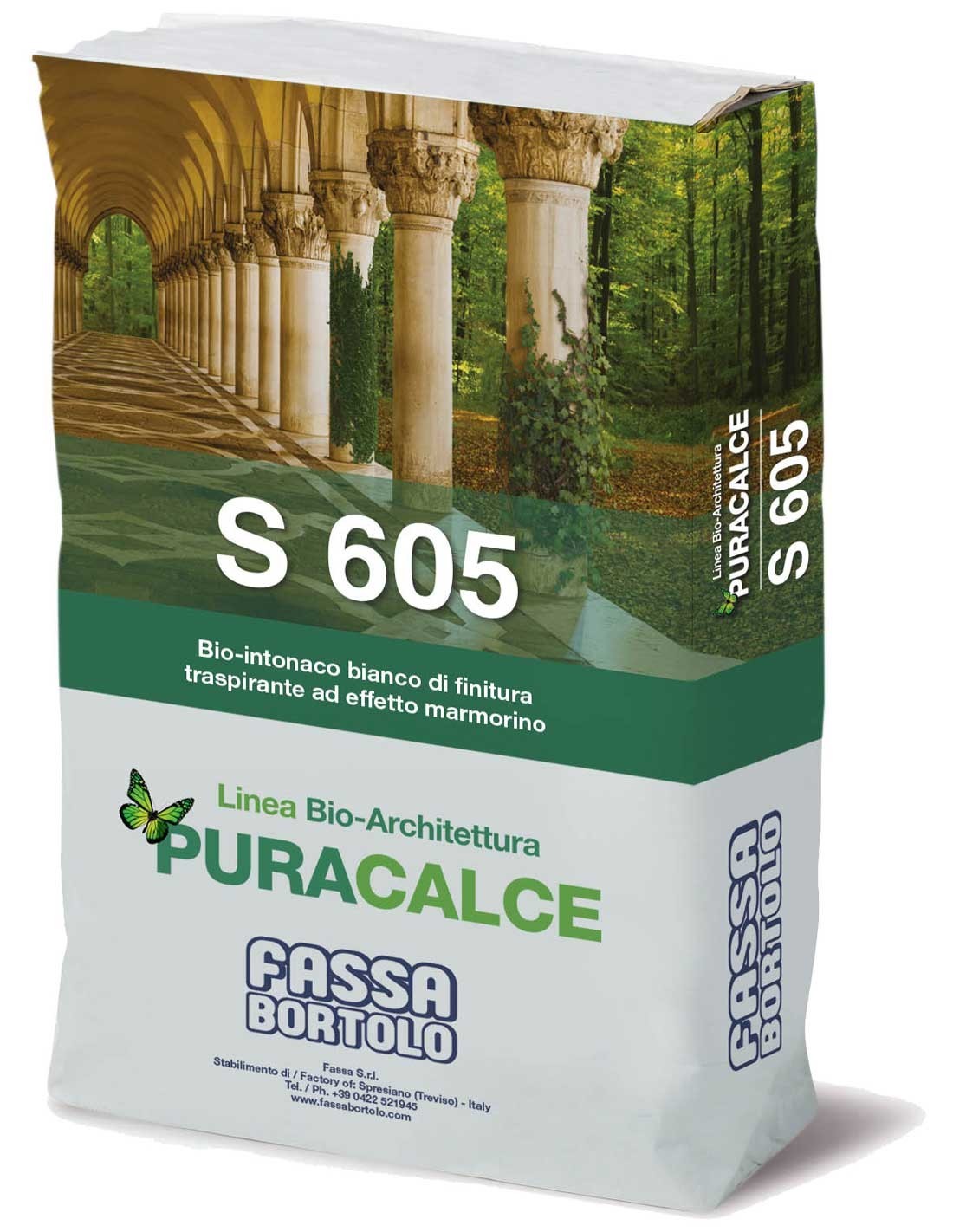 S 605 es un mortero seco blanco a base de cal aérea, conglomerante hidráulico, polvo de mármol y arenas clasificadas.